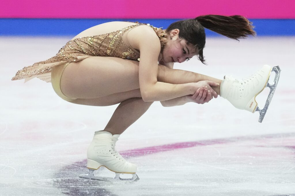 Alysa Liu, of the United States, performs during the women’s free skating program at the figure skating world championships, Friday, March 28, 2025, in Boston. (AP Photo/Charles Krupa)